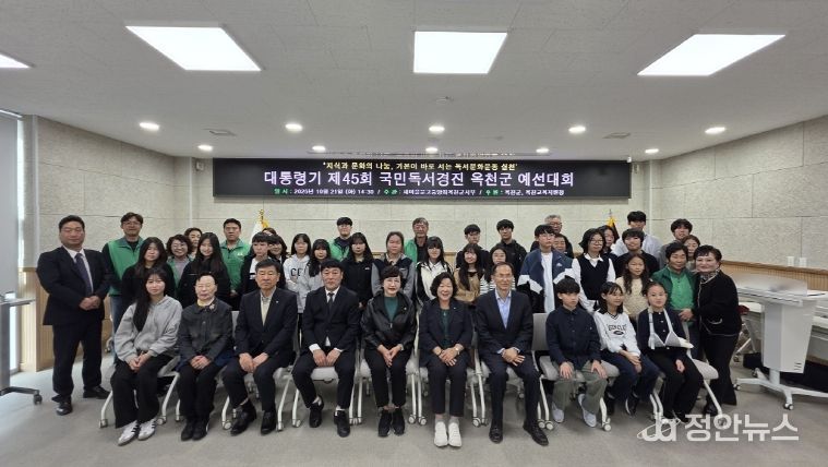 정안뉴스 황은경 기자 | 새마을문고중앙회 옥천군지부(회장 송일환)가 21일, 충북도청 남부출장소 대회의실에서 대통령기 제45회 국민독서경진 옥천군예선대회 시상식을 개최했다.