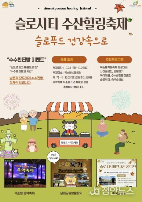 정안뉴스 황은경 기자 | ‘2025 슬로시티 수산힐링축제’가 오는 10월 24일부터 26일까지 3일간 충북 제천시 수산면 옥순봉 생태공원 일원에서 열린다.