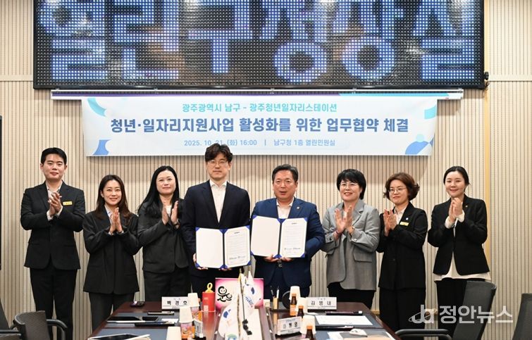 정안뉴스 안정주 기자 | 광주 남구는 청년정책 활성화와 청년 구직자 지원을 위해 광주 지역 청년 관계기관과 연달아 업무협약을 맺고 청년 역량 강화 등 본격적인 활동에 나선다.