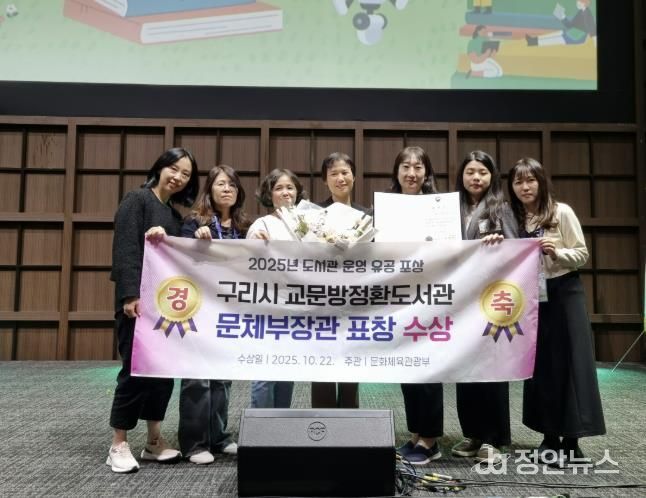 정안뉴스 안정주 기자 | 구리시 교문 방정환 도서관이 지난 10월 22일 수원컨벤션센터에서 열린 제62회 전국도서관 대회에서‘2025년 도서관 운영 유공 우수도서관’으로 선정되어 문화체육관광부 장관상을 받는 영예를 안았다.