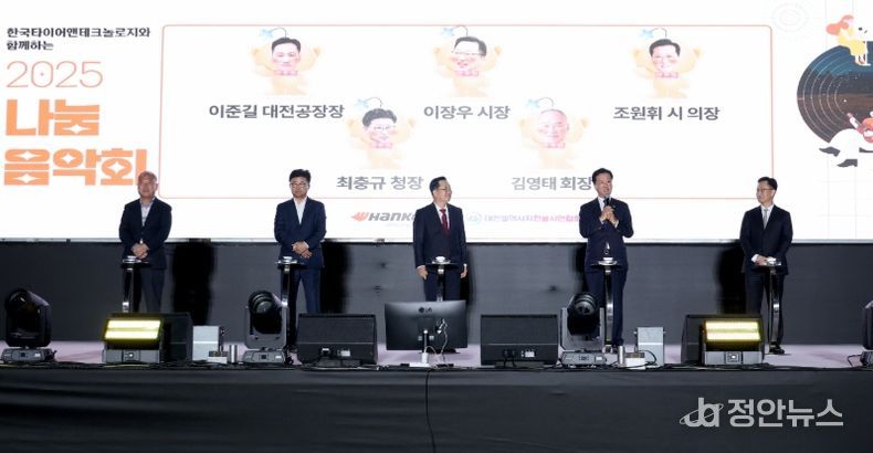 정안뉴스 안정주 기자 | 대전시의회 조원휘 의장은 23일 한남대학교에서 개최된 한국타이어앤테크놀로지 2025년 나눔음악회에 참석해 자원봉사자와 사회복지시설 종사자들에게 감사의 마음을 전하며 개막을 축하했다.