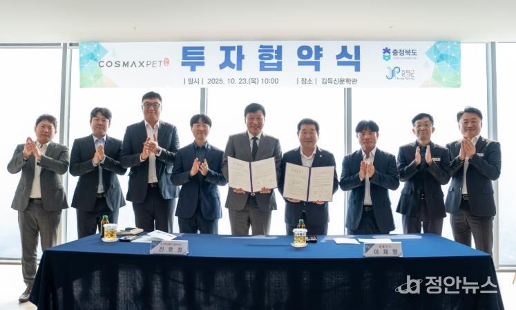 이날 이재영 군수는 협약식에서 “코스맥스펫의 투자는 증평군의 산업 생태계를 다각화하고 경쟁력을 높이는 계기가 될 것”이라며 “코스맥스펫㈜이 증평에 잘 정착해 국내 최고의 펫케어 전문 기업으로 성장하도록 인프라와 행정적 지원을 아끼지 않겠다”고 밝혔다.