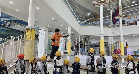 참여한 아이들은 ▲실내 암벽등반 ▲공중 네트 ▲포레스트 어드벤처 ▲짚라인 등 다양한 숲속 체험프로그램을 통해 균형감각과 협동심을 기르며 자신감을 키우는 시간을 가졌다.