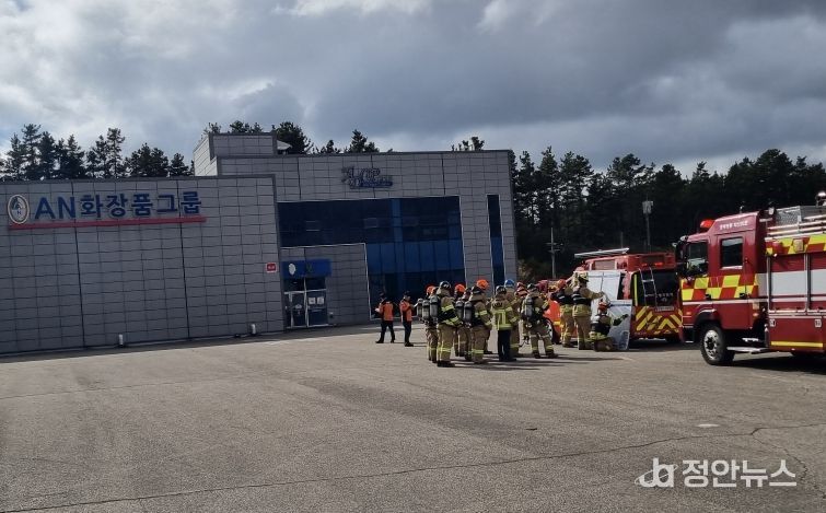 정안뉴스 황은경 기자 | 영동소방서장는 24일 황간면에 위치한 AN화장품 공장에서 가상 화재상황 부여에 따른 충북형 화재진압 현장지휘 전술 훈련을 실시했다.