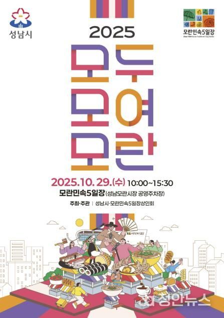 정안뉴스 안정주 기자 | 성남시는 오는 10월 29일 오전 10시부터 오후 3시 30분까지 모란민속5일장(중원구 둔촌대로 68)에서 ‘2025 모두모여모란’ 축제를 연다.