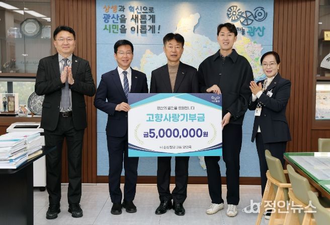 정안뉴스 안정주 기자 | ㈜삼성철망 양인욱 대표가 30일 광주 광산구에 고향사랑기부금 500만 원을 전달했다.
