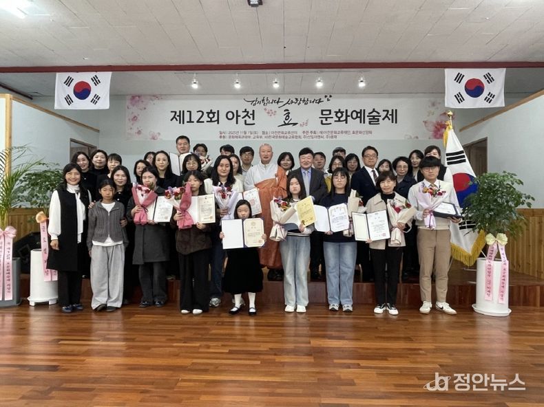 정안뉴스 안정주 기자 | 재단법인 아천문화교류재단(ACEF)이 주최-주관한 '제12회 아천효문화예술제’가 11월 1일 오후3시 아천문화교류센터에서 시상식이 개최됐다. 이날 행사에는 부모사랑 나라사랑의 올바른 가치관을 심어주기 위해 문화예술 부문의 우수한 인재들을 발굴 시상하고 올해로 12회를 맞았다.