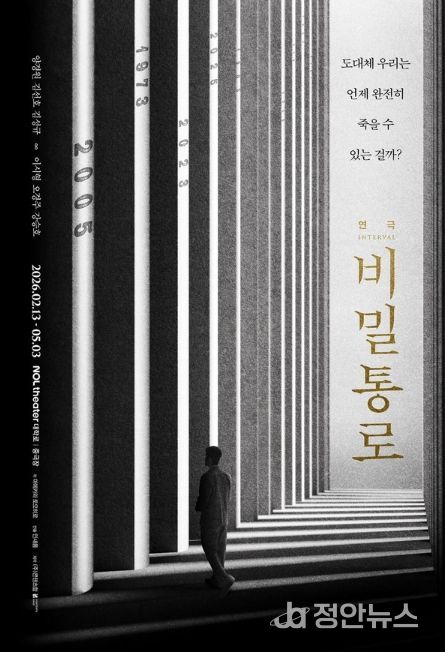 정안뉴스 안정주 기자 | 연극 ‘비밀통로’가 메인 포스터를 공개하면서 26년 2월13일부터 5월3일까지 NOL 씨어터 대학로 중극장에서 공연된다는 소식을 알렸다.