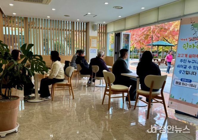 정안뉴스 황정혜 기자 | 부산진구는 지난 9월 가야감고개공원 내 카페공간을 리모델링하여 ‘감고개공원 쉼마루’로 새롭게 단장하고, 주민 누구나 편히 쉴 수 있는 휴게공간으로 개방한다고 밝혔다.