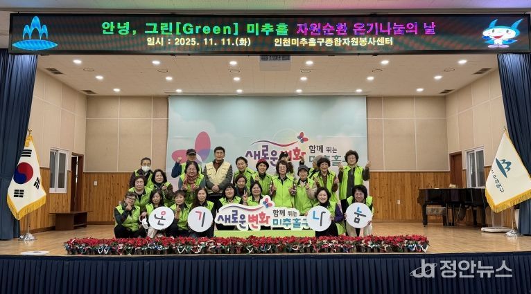 정안뉴스 안정주 기자 | 인천 미추홀구종합자원봉사센터(센터장 유중형)는 지난 11일 구청 대회의실에서 ‘2025 안녕, 그린미추홀 – 자원순환 온기 나눔의 날’을 진행했다.