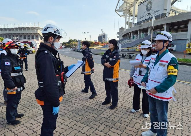 정안뉴스 안정주 기자 | 인천 미추홀구보건소는 12일 문학경기장에서 미추홀소방서와 합동으로 재난 상황에 대비한 ‘구급 대응훈련’을 실시했다.