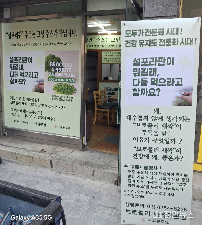 정안뉴스 안정주 기자 | ”브로콜리 새싹 특수 재배와 홈 스마트 팜 신 농업“ 프로젝트를 진행하고 있는 원투원플랫폼과 원투원푸드에서는 지난 11월 10일 서울 금천구 독산동에 현대인들의 지역 주민들의 건강을 위한 ”브로콜리 새싹 전문점“이 개설했다.