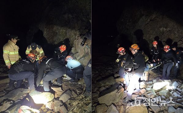 수색 과정에서 황금산 몽돌해변 갯바위에서 구조대상자를 심정지 상태로 발견했고, 현장에서 즉각 심폐소생술과 의료지도를 진행한 뒤 해경에 인계했다.