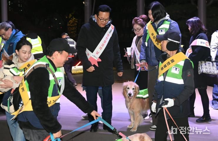 정안뉴스 안정주 기자 | 연수구는 지난 18일 반려견 순찰대(일명 연수지킴댕댕이), 연수2동·동춘3동 자율방범대, 인천경찰청 기동순찰대 등 50여 명이 참여한 ‘민·관·경 야간 합동 순찰’을 진행했다.