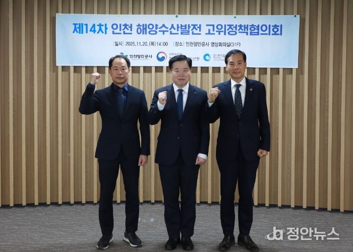 정안뉴스 안정주 기자 | 인천항만공사는 20일 공사(인천광역시 연수구 센트럴로 263) 31층 영상회의실에서 인천 해양수산발전을 위한 '제14차 인천 해양수산발전 고위정책협의회'를 개최했다고 밝혔다.