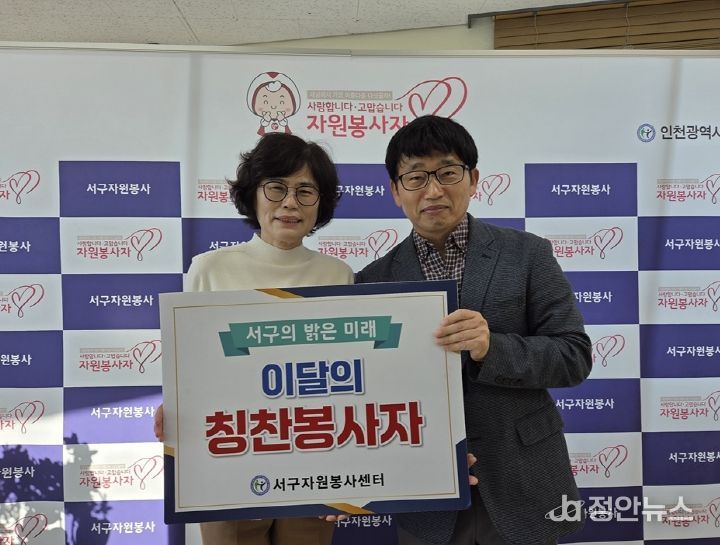 정안뉴스 안정주 기자 | 인천서구자원봉사센터는 지역사회 발전을 위해 여러 분야에서 다양한 봉사활동에 참여한 자원봉사자를 격려하고 자원봉사 문화를 확산하기 위한 “자원봉사 칭찬릴레이”를 매월 실시하고 있다.