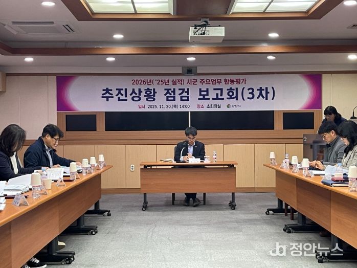 정안뉴스 김재홍 기자 | 양산시는 지난 20일 시청 소회의실에서 김신호 부시장 주재로 '2026년(25년 실적) 시군 주요업무 합동평가 추진상황 점검보고회(3차)'를 개최했다.