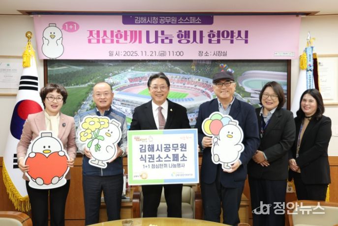 정안뉴스 김재홍 기자 | 김해시는 21일 시청 구내식당에서 ‘김해시청 공무원 소스페소 1+1 점심 한끼 나눔 행사’를 개최했다.