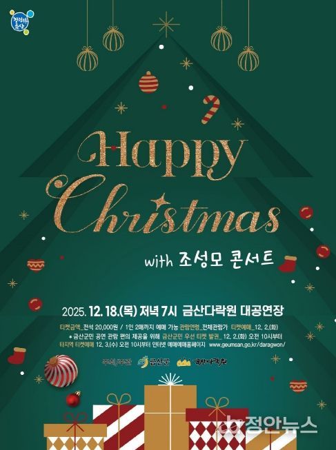 정안뉴스 황도연 기자 | 금산다락원은 12월 18일 오후 7시 생명의 집 대공연장에서 연말 특별기획공연 해피 크리스마스 조성모 콘서트를 개최한다.