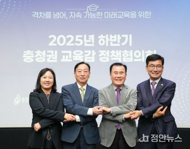 정안뉴스 황도연 기자 | 충남교육청과 대전·세종·충북교육청은 27일 아산 모나밸리에서 ‘2025년 하반기 충청권 교육감 정책협의회’를 개최했다.