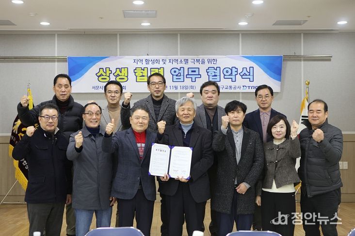 정안뉴스 안정주 기자 | 대구교통공사는 지역경제 활성화 및 지역소멸 극복을 위한 협력체계를 구축하기 위해 지난 11월 6일 대구서문시장연합회와, 18일에는 서문시장상가연합회와 상생협력 업무협약(MOU)을 체결했다.