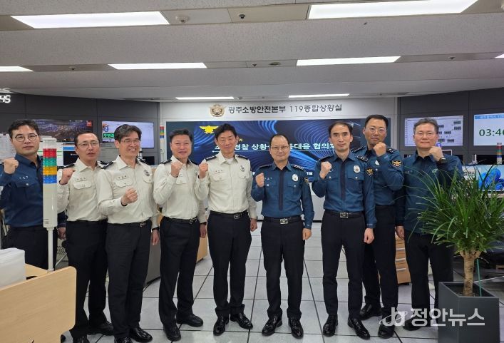 정안뉴스 안정주 기자 | 광주광역시 소방안전본부는 28일 소방안전본부 119종합상황실에서 광주경찰청과 함께 ‘소방-경찰 긴급신고 공동대응 협의회’를 개최했다.