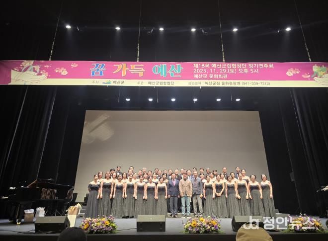 정안뉴스 황도연 기자 | 예산군립합창단은 지난 11월 29일 예산문예회관에서 ‘꿈 가득 예산’을 주제로 제18회 정기연주회를 개최하고 관객들의 뜨거운 박수 속에 성공적으로 마무리했다.