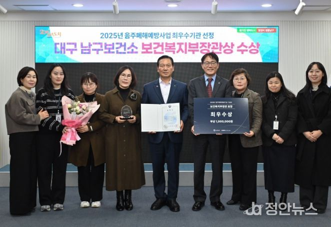 대구 남구보건소가 보건복지부 주관 ‘2025년 음주폐해예방사업 평가’에서 최우수기관으로 선정되어 보건복지부장관상을 수상했다.