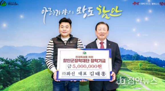 정안뉴스 김재홍 기자 | 함안군장학재단은 지난 3일 ㈜화신(대표 김태홍)에서 장학기금 500만 원을 기탁했다고 밝혔다.