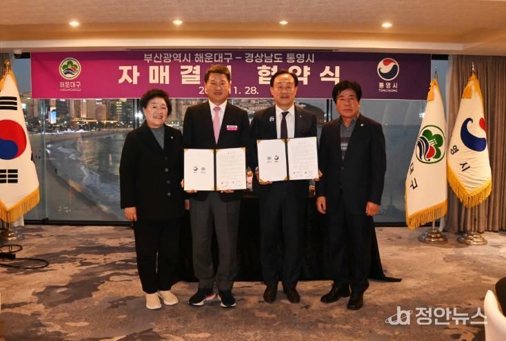 정안뉴스 황정혜 기자 | 해운대구는 지난 11월 28일, 해운대구에서 경상남도 통영시와 자매도시 결연 협약을 체결했다.