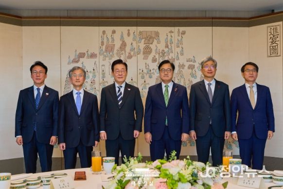 정안뉴스 안정주 기자 | 3일 이재명 대통령과 5부 요인의 오찬은 1시간 40분 동안 화기애애한 분위기 속에 진행됐다.
