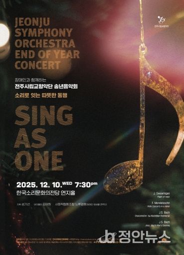 정안뉴스 안정주 기자 | 전주시립교향악단이 연말을 맞아 음악으로 사회적 가치를 실천하는 특별한 무대를 마련한다.