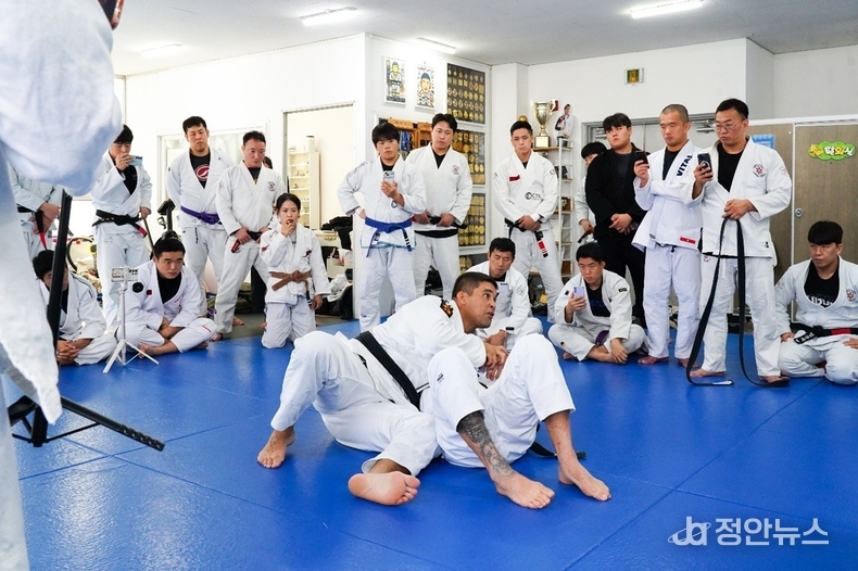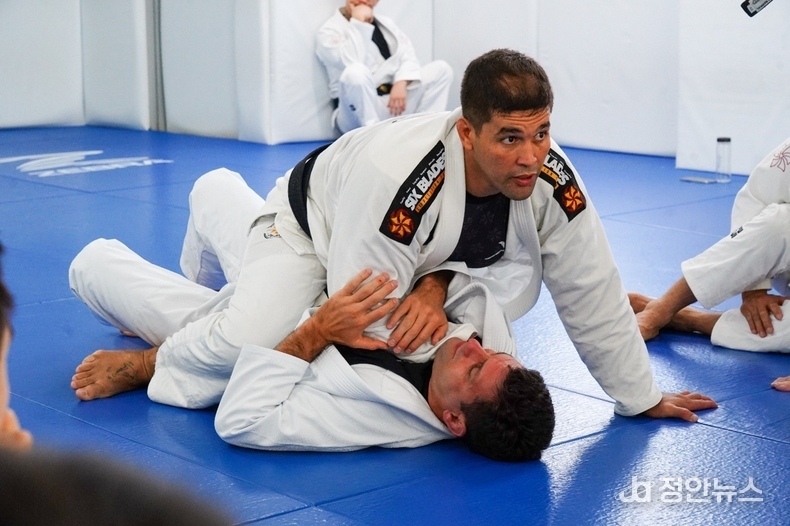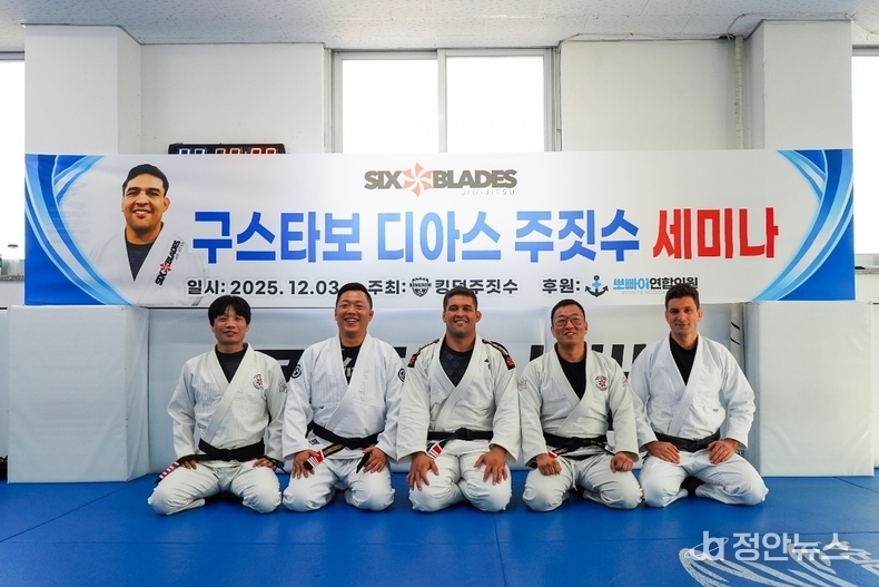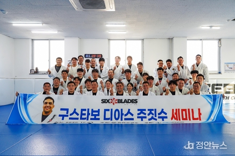 지난 3일 '글로벌 그래플링 네트워크' 식스블레이드팀(총관장 : 알렉산더 히베이로) 산하 킹덤주짓수는, '식스블레이드 총괄사범대행' 구스타보 디아스(37ㆍ브라질)를 초청해, 주짓수 세미나와 킹덤주짓수 지도자 승단 행사를 진행했다.