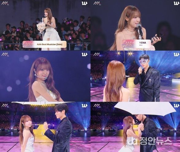 정안뉴스 안정주 기자 | 가수 최예나(YENA)가 'AAA' 베스트 뮤지션 상을 수상, 추영우와 설렘 퍼포먼스로 존재감을 드러냈다.
