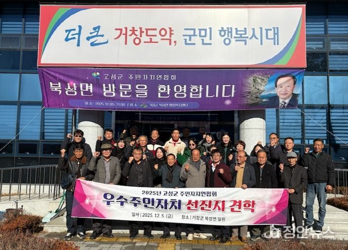 정안뉴스 김재홍 기자 | 고성군은 고성군 주민자치연합회(회장 이회재)가 12월 5일, 거창군 북상면을 방문하여 우수 주민자치 사례를 공유하는 선진지 견학을 실시했다고 밝혔다.