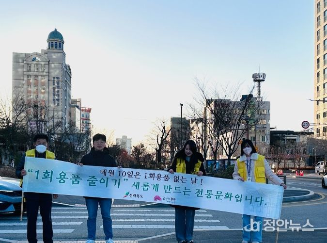 정안뉴스 안정주 기자 | 전주시는 8일 전주역 앞 첫마중길 일대에서 생활 속 1회용품 줄이기를 위한 ‘1회용품 없는 날’ 캠페인을 전개했다.