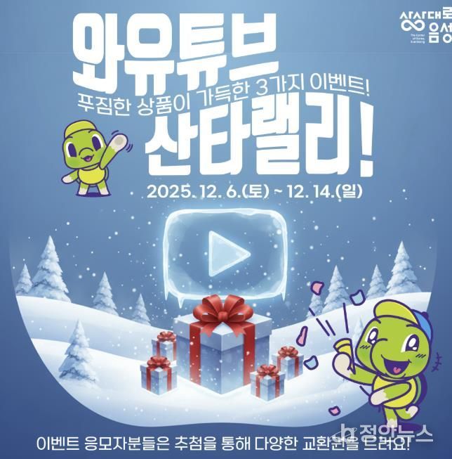 정안뉴스 황은경 기자 | 음성군은 ‘와유튜브 산타랠리 이벤트’를 이달 14일(23시)까지 진행한다고 밝혔다.