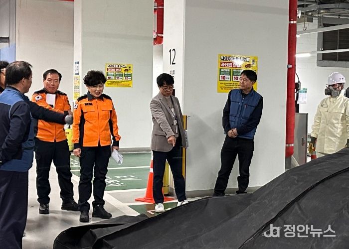 정안뉴스 안정주 기자 | 이오숙 전북특별자치도소방본부장은 9일 익산에 위치한 고층 건축물 포레나 익산 주상복합을 방문해 소방시설 유지관리 현황과 피난안전체계를 점검하고 화재로부터 안전한 주거환경 조성을 위한 현장점검을 실시했다.
