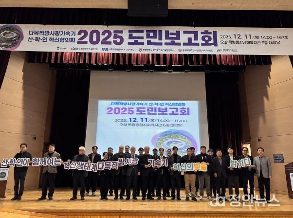 정안뉴스 황은경 기자 | 충북도는 11일 오창 목령종합사회복지관에서 도민 200여 명이 참석한 가운데 ‘다목적 방사광가속기 산·학·연 혁신협의회 도민보고회’를 개최했다.