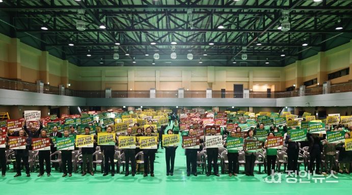 정안뉴스 김재홍 기자 | 지난 12일 합천군 새마을지회에서는 합천다목적체육관에서 새마을 지도자대회를 개최하여 임원들과 각 읍·면 새마을지도자 및 부녀회원 등 650여 명이 참석한 가운데 한마음으로 오도산 양수발전소 유치를 적극 지지했다.