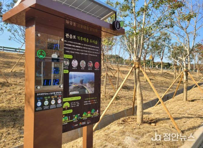 정안뉴스 김재홍 기자 | 남해군은 지속 가능한 환경 개선 및 주민 삶의 질 향상을 위해 고현면 차면리 125-3 일원(국도19호선)에 8억 원을 들여 0.8ha 규모의 기후대응 도시숲을 조성했다고 밝혔다.