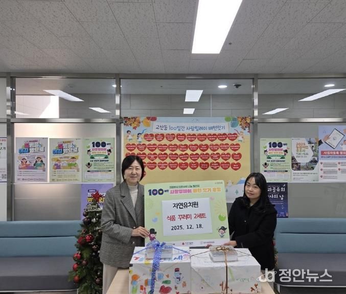 정안뉴스 안정주 기자 | 의정부시 고산동주민센터는 12월 18일 산곡동 소재 자연유치원이 독거노인을 위해 반찬 꾸러미 2세트를 전달했다고 밝혔다.