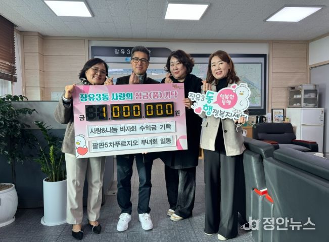 정안뉴스 김재홍 기자 | 팔판마을5차푸르지오아파트 부녀회는 불우이웃과 결식아동을 돕기 위해 개최한 ‘사랑&나눔 바자회’ 수익금을 성금으로 기탁하며 따뜻한 이웃 사랑을 실천했다.
