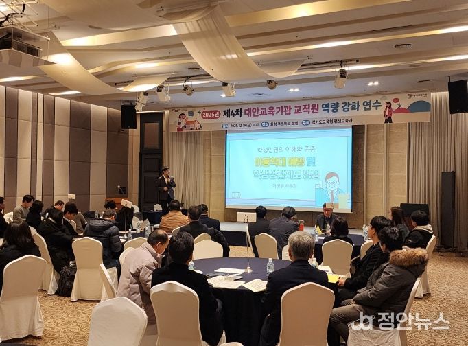 정안뉴스 안정주 기자 | 경기도교육청은 19일 푸르미르 토파즐홀에서 대안 교육기관 운영 내실화와 안전한 학습망 구축을 위한 ‘2025 등록 대안교육기관 기관장 역량 강화 연수’를 개최했다.