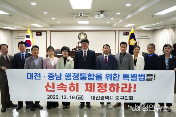정안뉴스 안정주 기자 | 대전광역시 중구의회 김석환 의원은 2025년 12월 19일, '대전충남특별시 설치 및 경제과학수도 조성을 위한 특별법'의 조속한 국회 심의·의결을 촉구하는 결의안을 대표발의하고, “더 이상의 지연은 지방 소멸을 사실상 방조하는 것”이라며 국회의 즉각적인 결단을 강력히 요구했다.