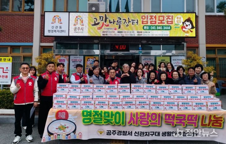 정안뉴스 황도연 기자 | 공주시 신관동은 지난 20일 신관지구대생활안전협의회(회장 이정열)가 연말을 맞아 관내 경로당 24곳을 직접 방문해 떡국떡 3킬로그램씩을 전달하며 따뜻한 나눔을 실천했다고 밝혔다.