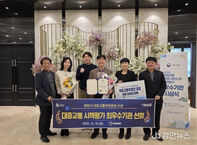 정안뉴스 안정주 기자 | 부천시는 지난 19일 국토교통부가 실시한 ‘2025년 전국 대중교통 시책 평가’에서 처음으로 최우수기관에 선정돼 국토교통부 장관 표창을 받았다.