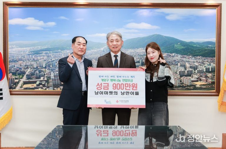 정안뉴스 안정주 기자 | 인천광역시 계양구는 낭이마켓(대표 정수미)이 지역 내 취약계층 지원을 위해 성금 900만 원을 기탁했다고 밝혔다.