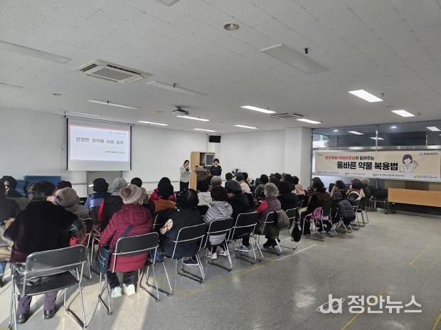 이번 교육은 어르신들의 안전한 의약품 복용과 약물 부작용 예방, 약물 오·남용 방지를 목적으로 마련됐으며, 경기도의료원 포천병원 약제과장 이주연 약사를 초빙해 약물에 대한 이해를 돕는 전문 교육으로 진행됐다.