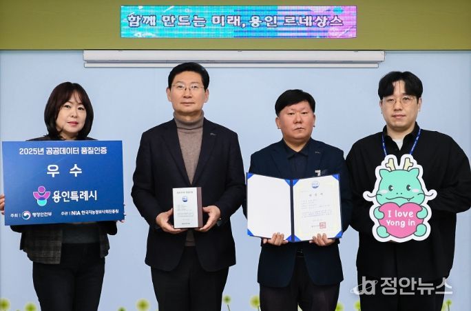 정안뉴스 안정주 기자 | 용인특례시는 19일 행정안전부가 주관한 ‘2025년 공공데이터 품질인증’에서 우수기관으로 선정돼 지방자치단체 가운데 최초로 공공데이터 품질인증을 획득했다고 22일 밝혔다.